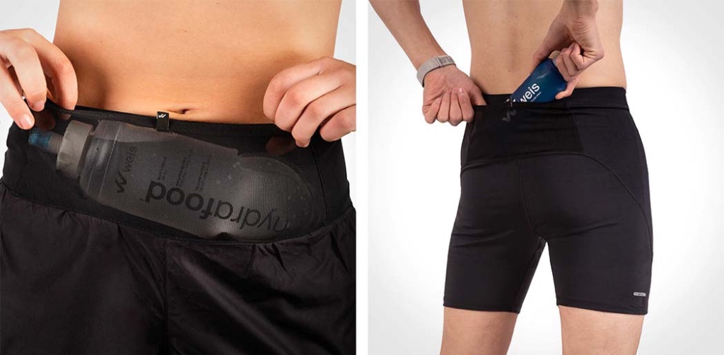 Nuestros shorts Zeph (hombre) y Eite (mujer) revolucionan el concepto de carga al integrar un sistema de guardado directamente en la cintura de la prenda.