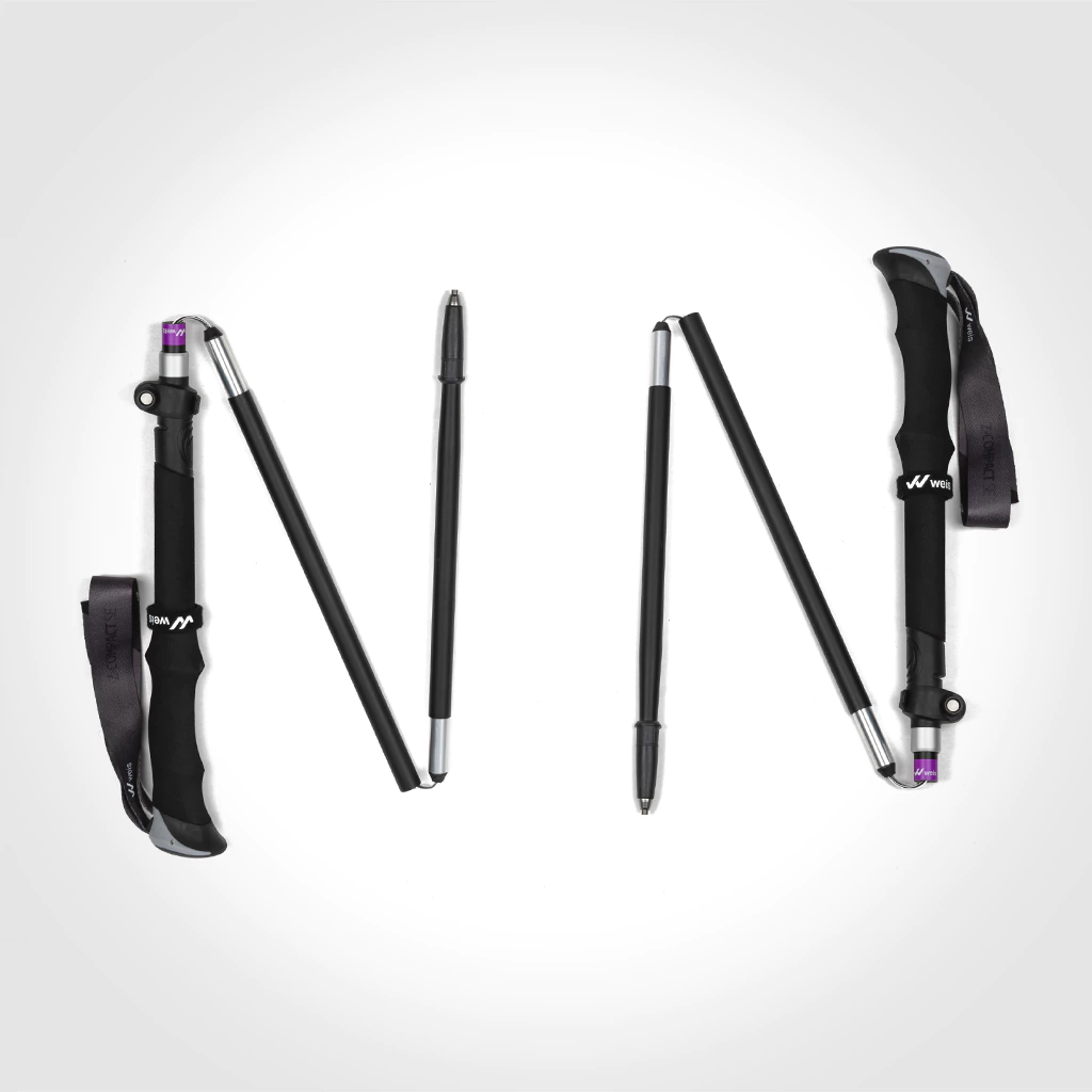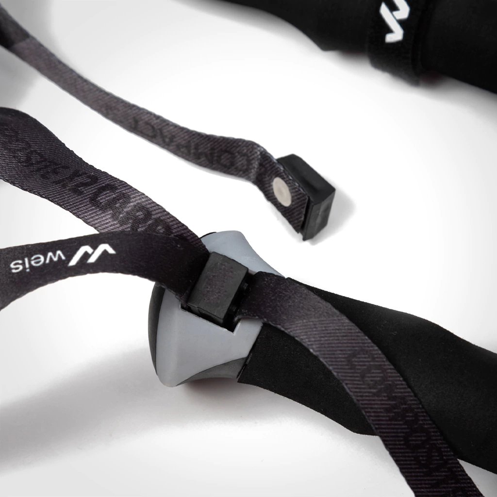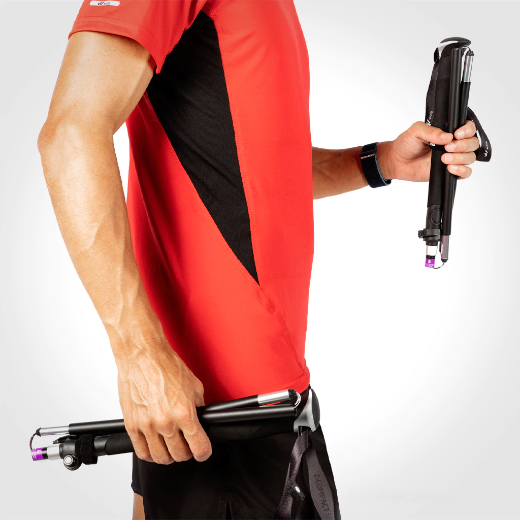 Gracias a su ajuste en altura con clip de seguridad y su sistema de plegado rápido Z-POLE RAPID DEVELOPMENT®, se despliegan y guardan en segundos sin frenar el ritmo. Su diseño compacto permite transportarlos cómodamente en fajas portabastones o chalecos, sin interferir en la carrera.