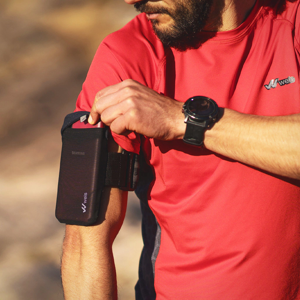 - Respaldo de tela impermeable para proteger el móvil de la transpiración.