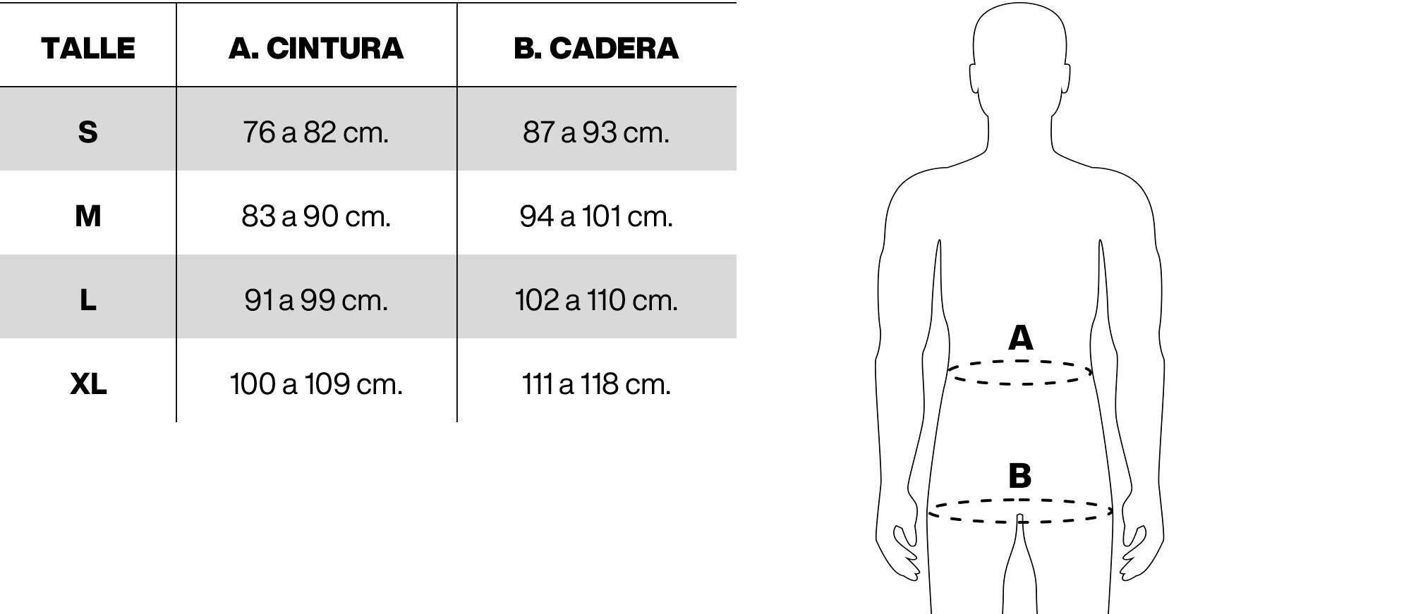 Medí el contorno de tu cintura y la más ancha de tu cadera y buscá la correlación con el talle de las calzas.