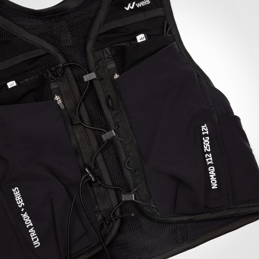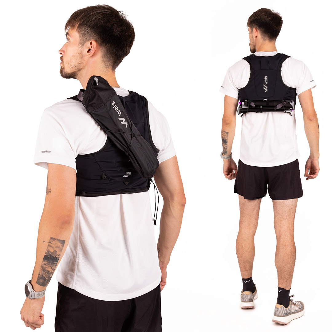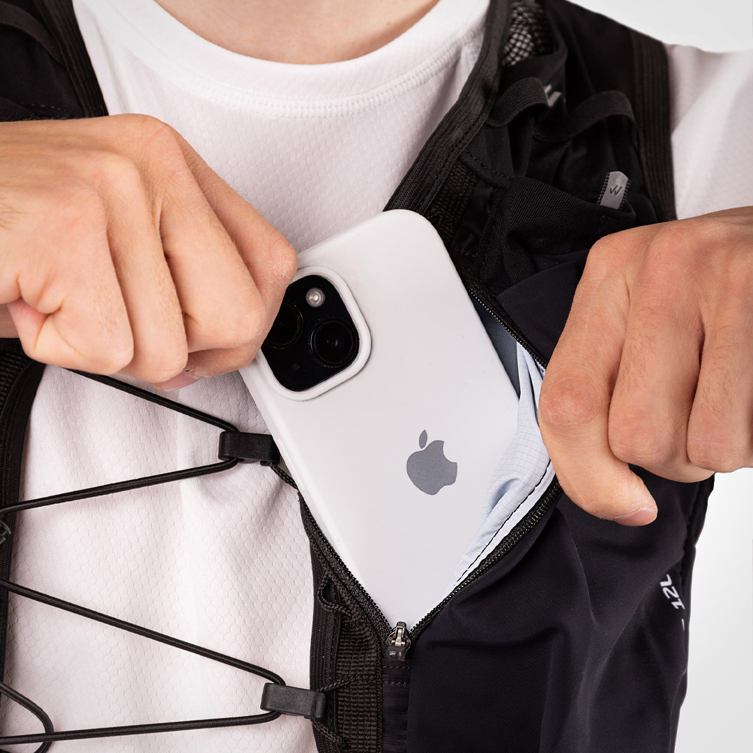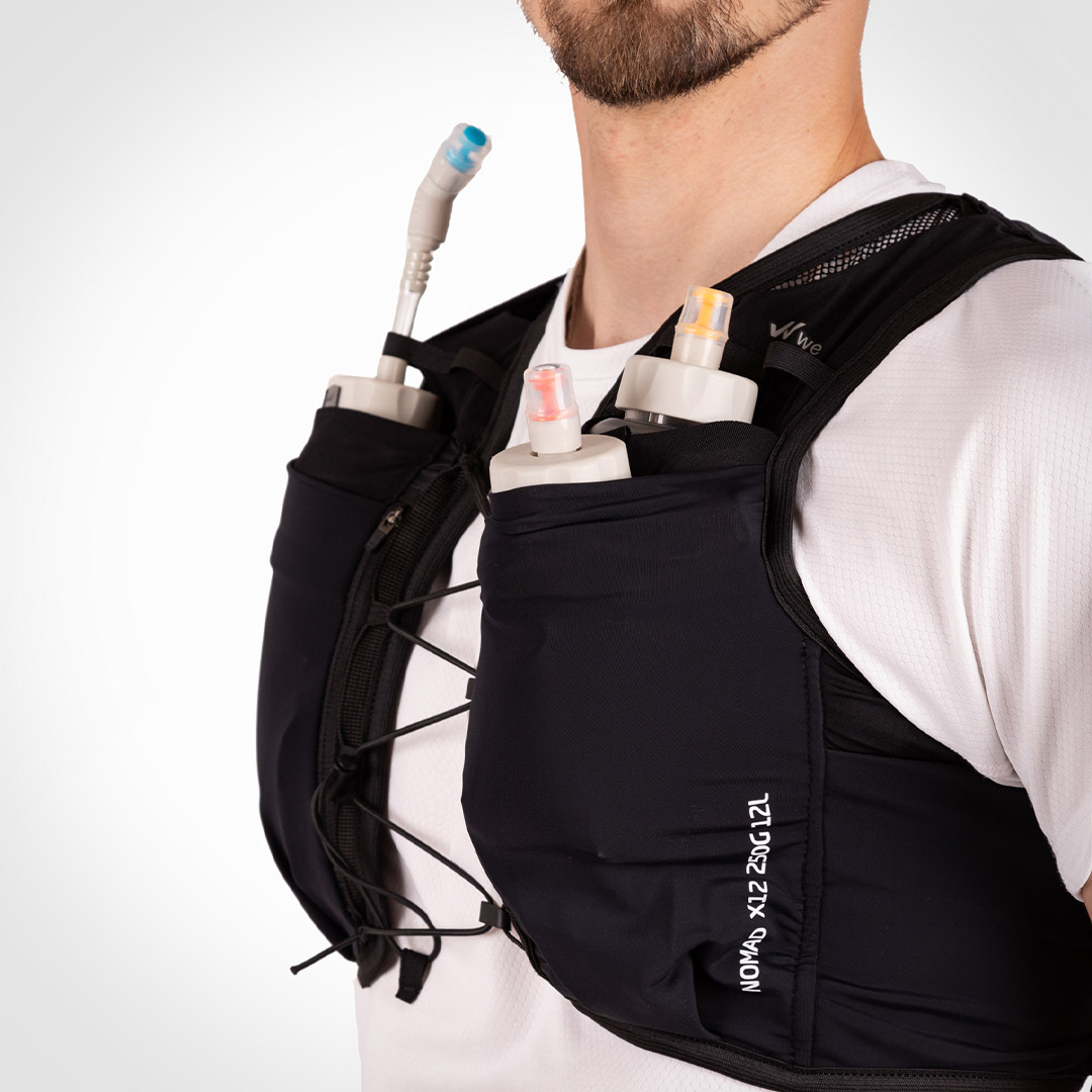 Dispone de 12 bolsillos multifuncionales para teléfono, geles, barras energéticas, comida, bebida, lentes de sol, linterna, manta térmica, ropa, residuos y todo lo necesario para ultras o entrenamientos extensos.
