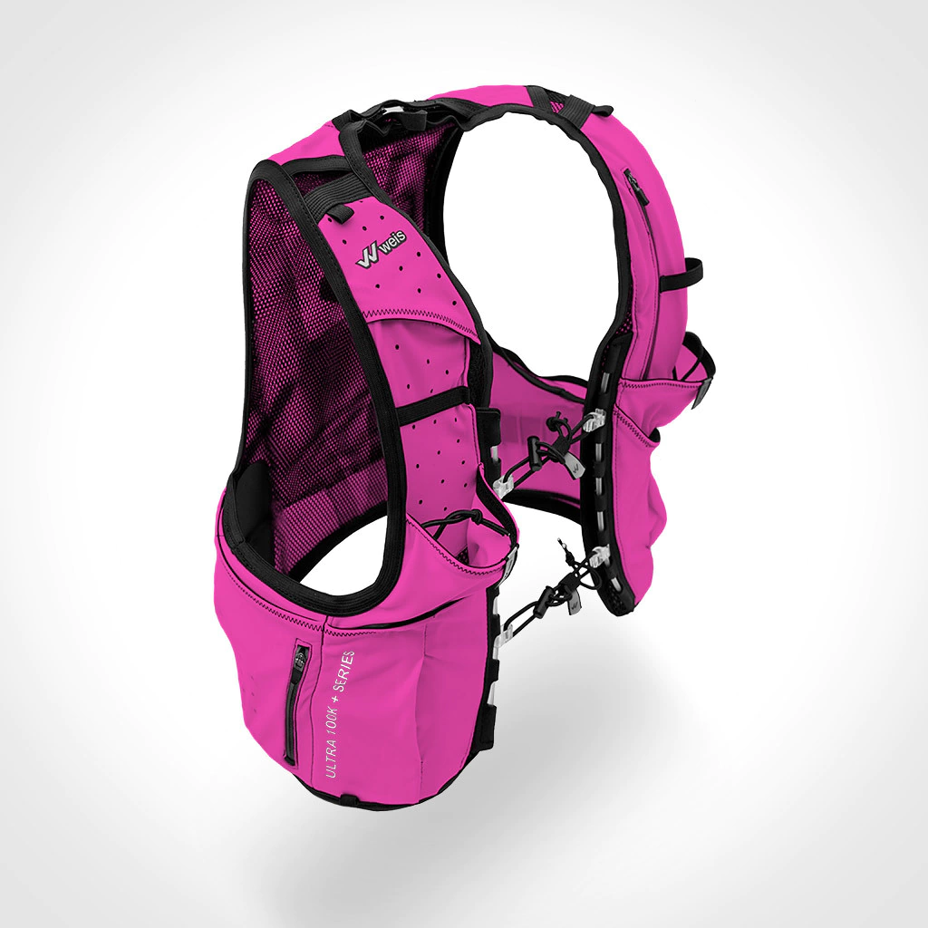 - 2 compartimentos frontales con hangers y portabombillas para botellas blandas tipo soft flask (recomendada), botellas rígidas o caramañolas de hasta 750 ML.