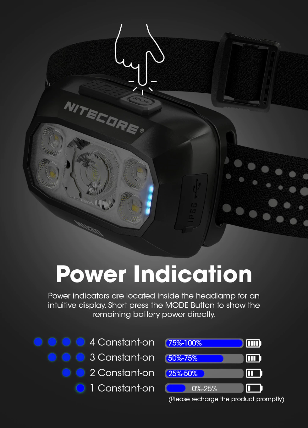 Con un peso de solo 90 gramos (3.17 oz), la NU30 es una linterna frontal ligera, perfecta para correr de noche, aventuras al aire libre o acampar.